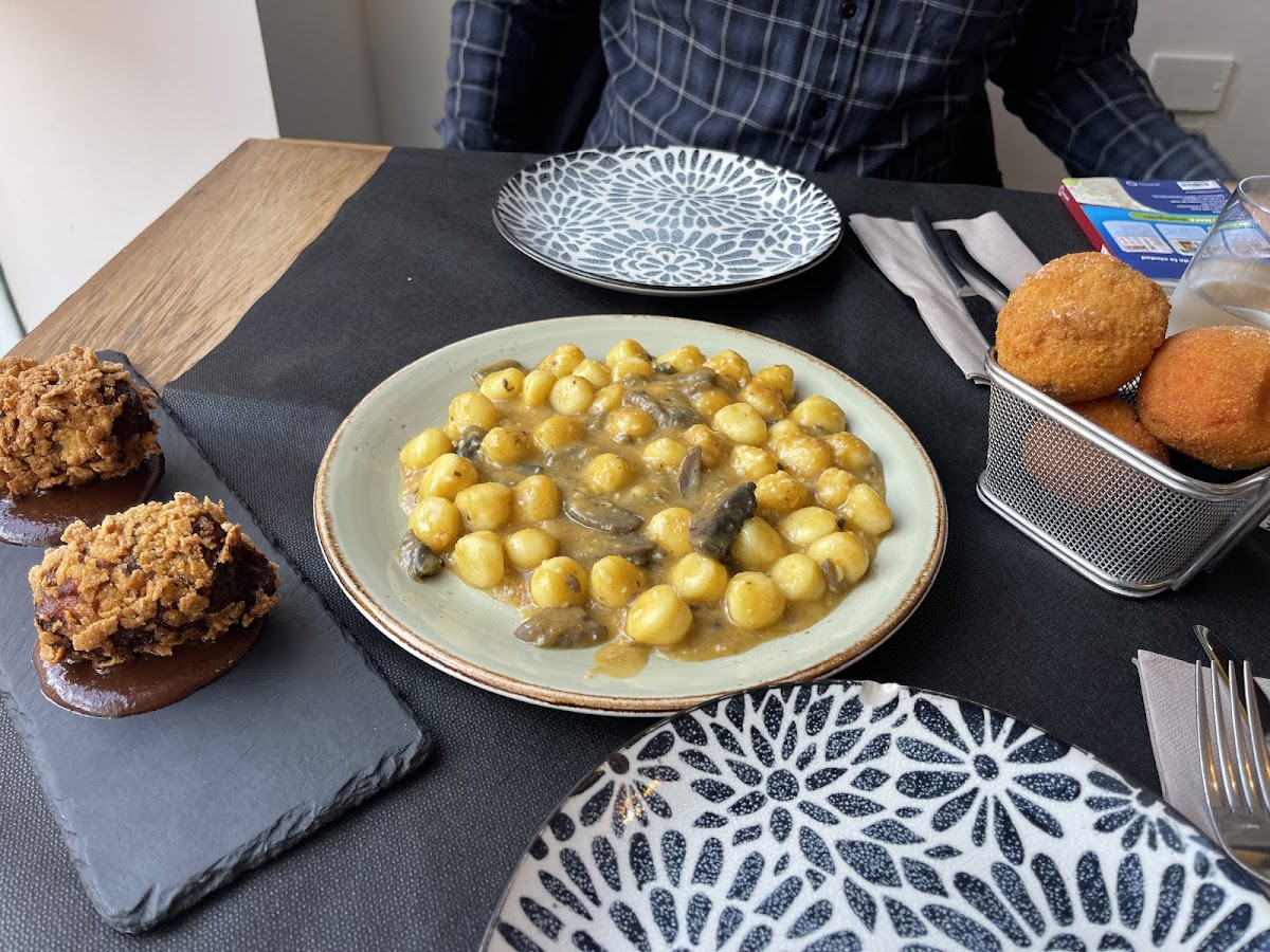 One of the standout highlights of Ristorante Terre & Domus is their exquisite menu, offering a variety of dishes that reflect the true essence of Italian cuisine. For a unique and flavorful starter, the Bolas de Arroz Y Queso (rice and cheese balls) are a perfect choice, delivering a satisfying crunch with every bite. If you're craving something hearty and comforting, the Ñoquis Con Setas (gnocchi with mushrooms) is a delectable option that combines soft, pillowy gnocchi with the earthy flavors of sautéed mushrooms. And for those who enjoy a more robust dish, the Bolas de Rabo de Toro (oxtail balls) are rich in flavor and a must-try. Of course, no meal at Ristorante Terre & Domus would be complete without savoring their Espaguetis Carbonara. This classic Roman dish is prepared to perfection, with creamy egg sauce, crispy pancetta, and freshly grated Pecorino Romano cheese.