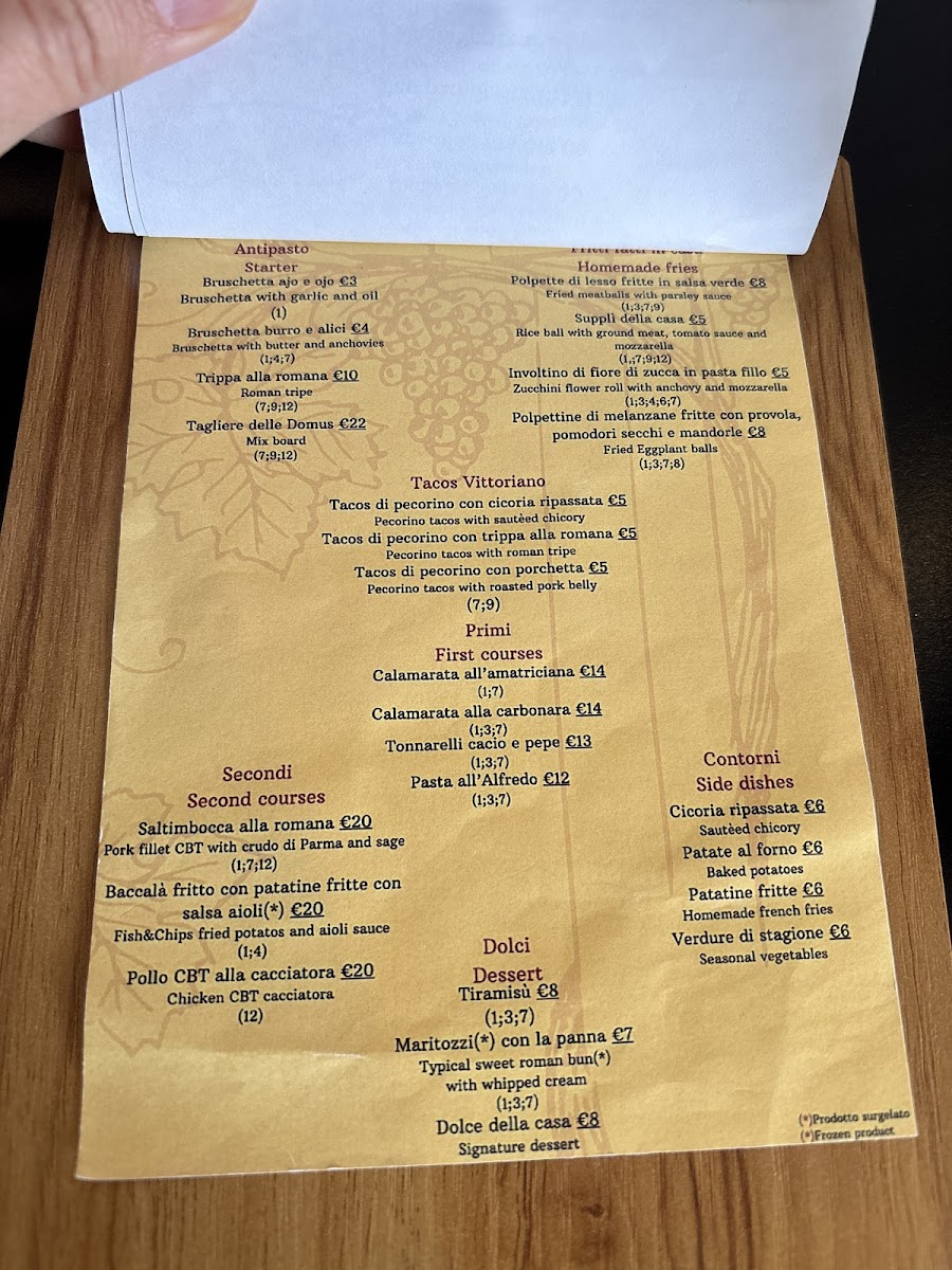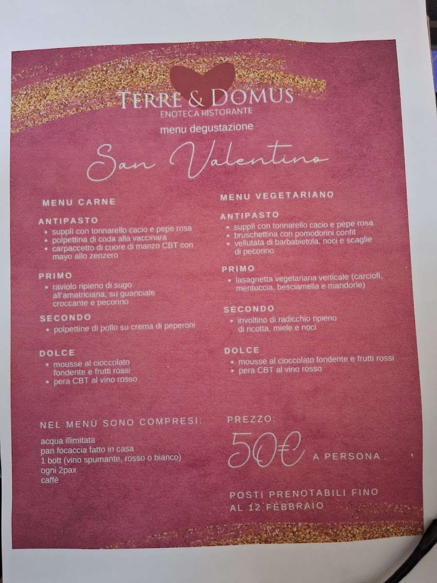 Ristorante Terre & Domus delivers a thoughtfully curated menu that feels both rooted in tradition and elevated by careful execution, making it a memorable culinary stop within the historic setting of Palazzo Valentini. The selection highlights comforting Roman and Spanish-inspired flavors, with dishes like Bolas de Arroz Y Queso offering a satisfying, crispy introduction, while the Bolas de Rabo de Toro bring a richer, slow-cooked depth that lingers pleasantly. The pasta offerings stand out in particular-Espaguetis Carbonara is executed with admirable authenticity, balancing creaminess and sharpness without excess, and the Ñoquis Con Setas showcase a delicate texture paired with earthy mushroom notes that feel both refined and hearty. Overall, the menu strikes a harmonious balance between indulgence and elegance, leaving the impression of a kitchen that respects tradition while still delivering a polished dining experience.